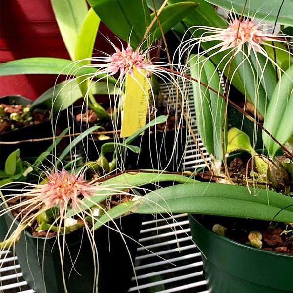 With its eerie, beautiful flowers and compact structure, Bulbophyllum 'Thai Spider' makes a striking statement in any exotic orchid collection. It's a must-have for growers who appreciate wild, non-traditional orchid forms.