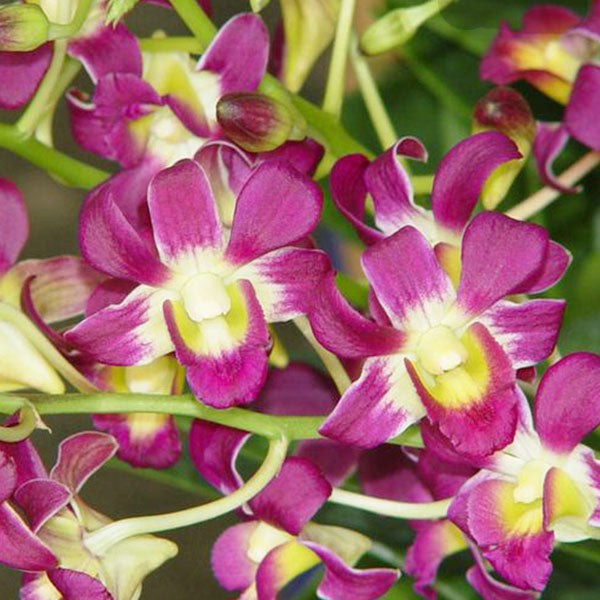 Dendrobium orchid plants are a diverse and popular genus known for their striking beauty and adaptability. They prized for their stunning variety of flower shapes, sizes, and colors, which range from pure white and soft pastels to vibrant purples and yellows. They are prolific bloomers, often producing multiple flowers on a single spike, with some species even capable of flowering multiple times a year. Known for their adaptability, Dendrobiums can thrive in various climates, from tropical rainforests to cooler mountainous regions. They are considered the best orchids for beginners.