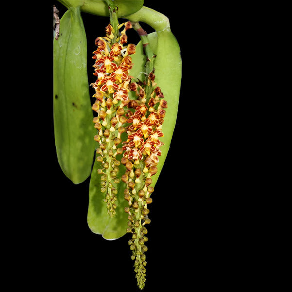 A robust epiphyte, Robiquetia spatulata thrives when mounted or potted in a well-aerated medium and is known for its resilience and vigorous blooming when provided with the right care. The dense flower spikes offer an impressive floral display that can transform any space into a lush, botanical showcase.